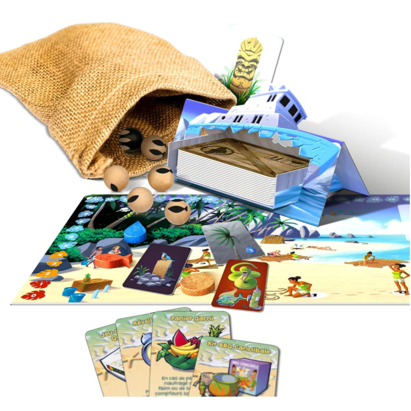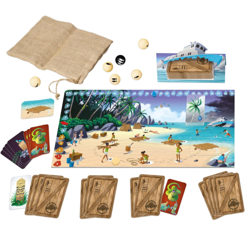 In this exciting party game, you are a group of shipwreckers stranded on a deserted island. Are you in paradise? Unfortunately no, the water is scarce and there is hardly any food