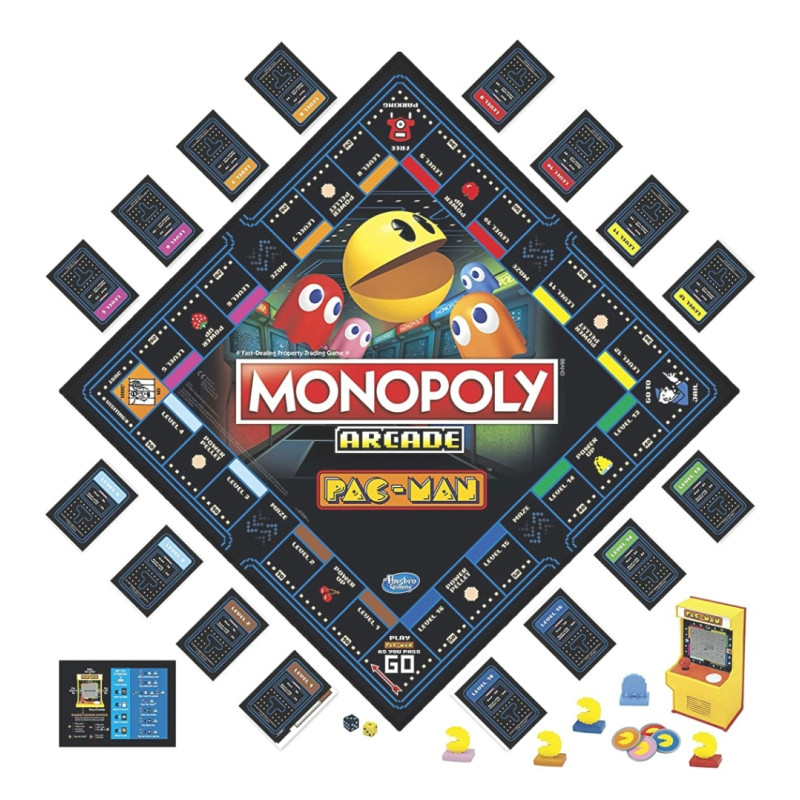 MONOPOLY GAME WITH PAC-MAN THEME: Did you play the classic Pac-Man arcade game back in the 80s? Relive favorite moments with this Pac-Man themed Monopoly Arcade board game