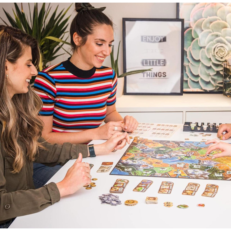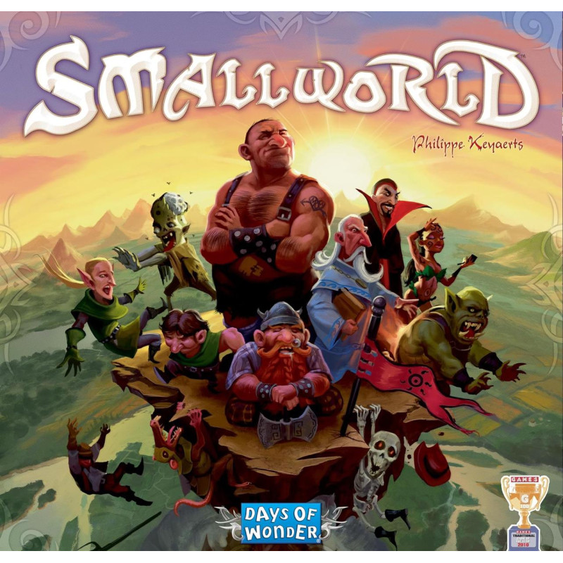 Designed by Philippe Keyaerts as a fantasy follow-up to his award-winning Vinci, Small World is inhabited by a zany cast of characters such as dwarves, wizards, amazons, giants, orcs, and even humans, who use their troops to occupy territory and conquer adjacent lands in order to push the other races off the face of the earth.