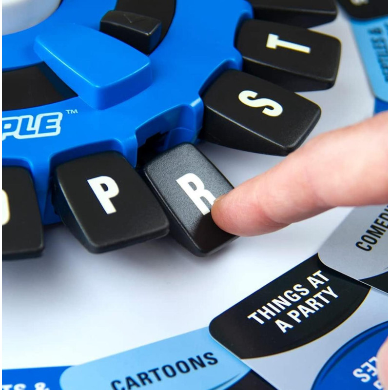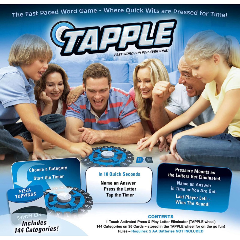 Includes 1 Tapple wheel with built-in timer, 36 cards (144 categories), rules