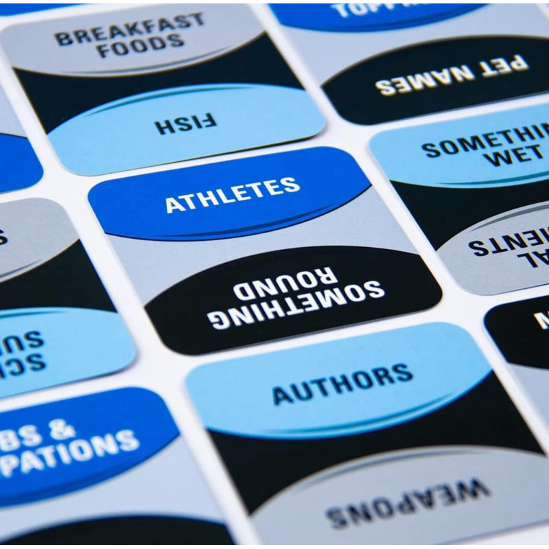 HOW TO PLAY - Choose a card with a category, press the timer, and shout out words related to the category that start with a certain letter. Once the related word is announced, press the corresponding letter tab.